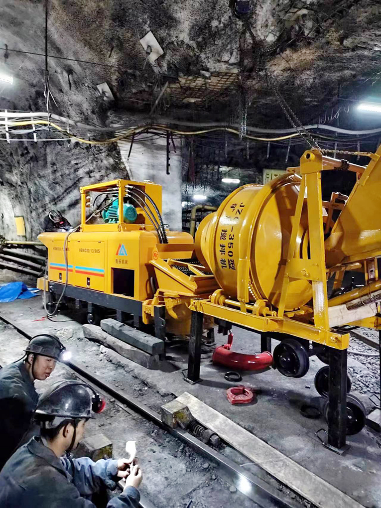 山西陽煤司家莊煤礦井下施工作業(yè)現(xiàn)場攪拌遠(yuǎn)距離輸送混凝土